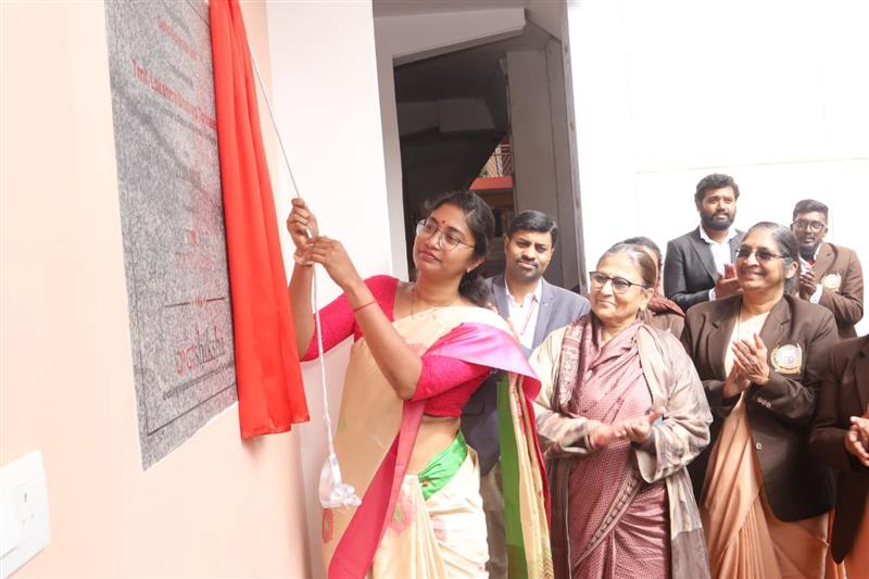 Tmt. Lakshmi Bhavya Tanneeru, District Collector, The Nilgiris, unveils the plaque marking the inauguration of DigiShiksha at Providence College, an initiative by Microland Foundation, in the presence of Mrs. Kalpana Kar