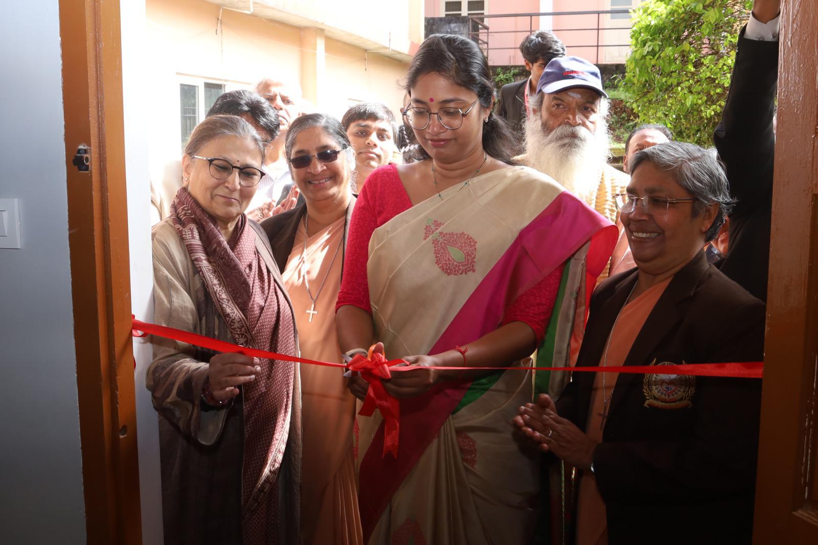 Tmt. Lakshmi Bhavya Tanneeru, District Collector, The Nilgiris, inaugurates the upgraded Data Lab and Video Conferencing Studio at Providence College as part of DigiShiksha by Microland Foundation, alongside Mrs. Kalpana Kar, Managing Trustee, Microland Foundation, and Dr. Sr. V. J. Sheela, Principal, Providence College